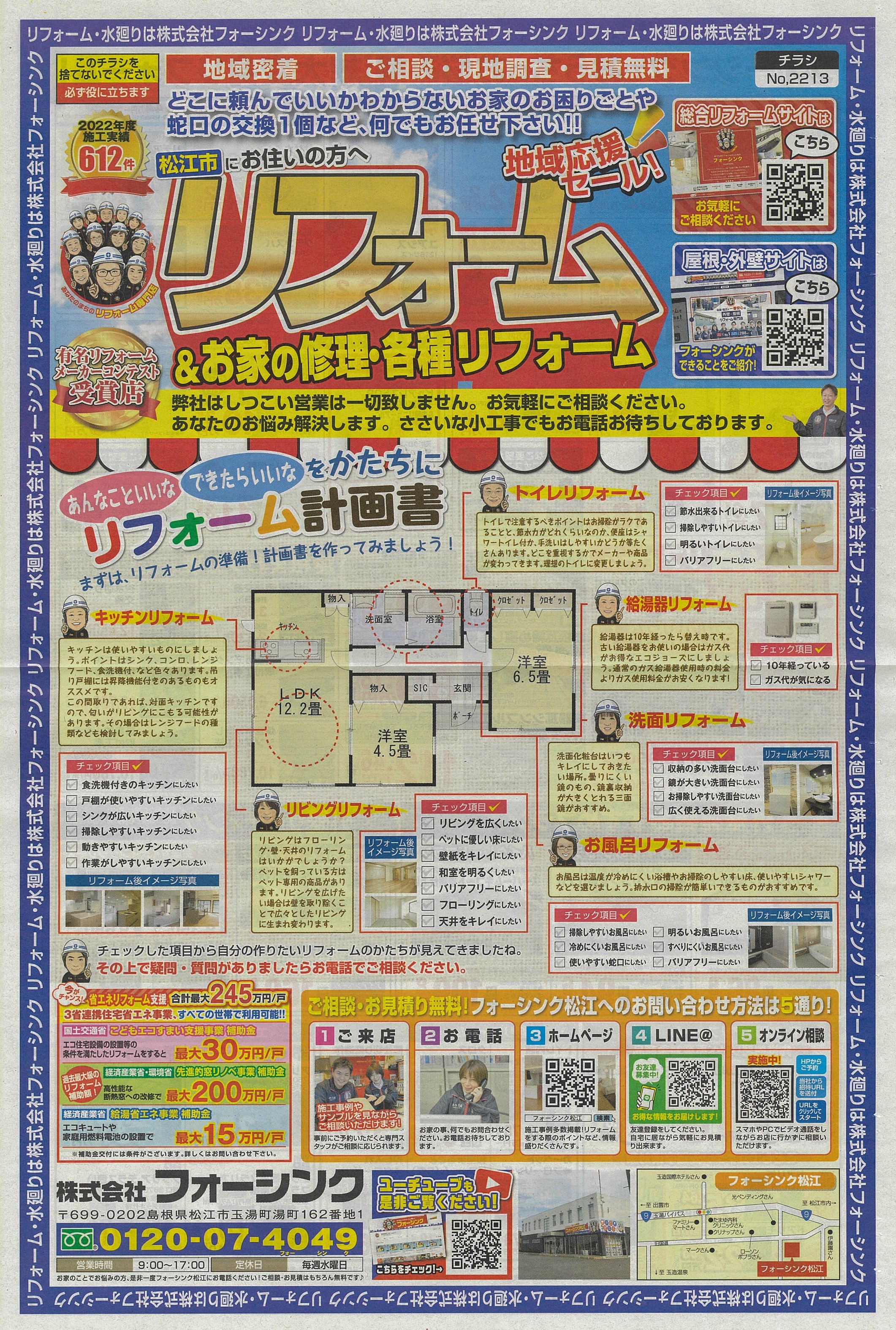 HOME現場ブログ日々のフォーシンク 日々のフォーシンク 投稿日:2023年4月22日 カテゴリー: 日々のフォーシンク 物置の塗装もお任せ下さい☆~松江店日記~ おはようございます!外壁塗装をご依頼頂いたお客様より、物置の塗装もご依頼頂きました(^^)/塗装前です↓施工中です↓施工後です↓新品同様の輝きを取り戻しました☆ ~∞~∞~∞~∞~∞~∞~∞~∞~ いつもスタッフブログをご覧いただきあり... 投稿日:2023年4月15日 カテゴリー: 日々のフォーシンク 外壁塗装のご依頼を頂きました☆~松江店日記~ おはようございます!天候にも恵まれ外壁塗装が順調に進んでおります!丁寧に作業致します!! 差し入れのお菓子を頂きました(^^)/ありがとうございます♪~∞~∞~∞~∞~∞~∞~∞~∞~~∞~∞~∞~∞~∞~∞~∞~∞~ いつもスタッフブ... 投稿日:2023年4月9日 カテゴリー: 日々のフォーシンク ガス給湯器の交換もお任せ下さい(^^)/~松江店日記~ おはようございます!先日ガス給湯器の取付のご依頼を頂きました!ありがとうございます!天気が良く作業もスムーズに完了しました!菜の花も元気に咲いていました!松江店も負けじと日々元気に営業しております! ~∞~∞~∞~∞~∞~∞~∞~∞~~∞... 投稿日:2023年4月7日 カテゴリー: 日々のフォーシンク おはようございます!本日、折込チラシ投函日です!ご相談お待ちしております(*^▽^*) ~∞~∞~∞~∞~∞~∞~∞~∞~~∞~∞~∞~∞~∞~∞~∞~∞~ いつもスタッフブログをご覧いただきありがとうございます。 毎日の暮らしがもっ... 投稿日:2023年4月2日 カテゴリー: 日々のフォーシンク 外壁塗装のご依頼頂きました!~松江店日記~ おはようございます!外壁塗装のご依頼を頂きました!ありがとうございます(^^)/塗装前のケレン作業です丁寧に塗布していきます!お天気も良く作業が進みます!細かい部分も丁寧にしっかり施工致します(*^▽^*)~∞~∞~∞~∞~∞~∞~∞~∞~... 投稿日:2023年3月31日 カテゴリー: 日々のフォーシンク 3月のご相談内容です♪~松江店日記~ おはようございます!松江店です!今月3月のご相談内容のご紹介です!皆様のご参考になりますように♪・内装リフォーム・屋根外壁塗装・樋修繕・バリカ交換・内窓設置・キッチンリフォーム・トイレリフォーム等々沢山のご相談いただきました!ありがとうござ... 投稿日:2023年3月26日 カテゴリー: 日々のフォーシンク トイレ改修工事もフォーシンクへお任せ下さい(^^)/~松江店日記~ おはようございます!松江店です!出雲、松江両店舗毎月ご相談いただきますトイレ改修工事!ご参考に施工特集をどうぞ!LIXILさん↓シックな黒いトイレへ変身!施工前施工後TOTOさん↓掃除がしやすくなりました!施工前施工後LIXILさん↓劇的フ... 投稿日:2023年3月23日 カテゴリー: 日々のフォーシンク 感動したWBC!~松江店日記~ こんにちは!松江店板垣です!WBCで日本が優勝しましたね!会社でも話題で持ちきりです!僕自身も小・中・高校と野球をしていました⚾!!このアメリカのメンバーに勝ち優勝出来た事に日本の野球界のレベルの高さを改めて思い知りました!優勝に行きつくま... 投稿日:2023年3月19日 カテゴリー: 日々のフォーシンク 今年も!最新桜情報~松江店日記~ おはようございます!松江店から徒歩すぐの玉湯川の桜情報をお届け致します!現在、蕾が出来ています♪桜見物から松江店へお立ち寄り頂くコースをお勧め致します!展示のおトイレ達もお待ちしております(*^▽^*) ~∞~∞~∞~∞~∞~∞~∞~∞~... 投稿日:2023年3月18日 カテゴリー: 日々のフォーシンク お客様より♪~松江店日記~ おはようございます!先日、お急ぎでシャワーの留め具交換の対応をさせて頂きました!御礼にとお菓子を頂戴致しました!('◇')松江店スタッフと分けて美味しく頂きました♪お心遣いに感謝です!また今日も頑張れます! ~∞~∞~∞~∞~∞~∞~∞~... 27 / 全35ページ« 先頭‹ 前232425262728293031次 ›最後 » 現場ブログ一覧はこちら 最新の投稿 新社屋ストーリー⑮~外壁下地施工中~ 新社屋ストーリー⑭~施設内部の天井配線・空調の仕込み施工~ クリナップのユニットバス~ラクヴィア~のご紹介♪ お庭まわりリニューアルの施工完了です☆ 新社屋ストーリー⑬~土間配筋とコンクリート打設~ クリナップのシステムキッチン~ラクエラ~のご紹介♪ 新社屋ストーリー⑫~内部床下地施工~ 新社屋ストーリー⑪~屋根施工~ リビングの内装リフォーム完成です☆ 新社屋ストーリー⑩~外壁下地胴縁取付完了~ カテゴリー 日々のフォーシンク (343) 現場日記 (309) 建築士のリフォームお役立ちブログ (215) メディア掲載情報 (6) その他・地域情報 (12) 月別アーカイブ 2026年1月 (12) 2025年12月 (10) 2025年11月 (9) 2025年10月 (9) 2025年9月 (9) 2025年8月 (9) 2025年7月 (11) 2025年6月 (13) 2025年5月 (11) 2025年4月 (8) 2025年3月 (4) 2025年2月 (2) フォーシンクについて 選ばれる理由 会社案内代表挨拶会社概要アクセスマップ表彰実績経営理念・経営方針イマックスグループ情報 スタッフ紹介 施工事例 施工事例一覧 エコキュートリフォーム 窓リフォーム 1DAYリフォーム 内窓 こんな事もやります ペレ