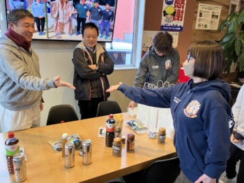 フォーシンクの店内はペレットが点火されポカポカしています! そんな中会議をしてましたが、会議終わり、関係各所様からいただいたお歳暮を毎年社長からのサービスで社員みんなで分けさせていただいております!