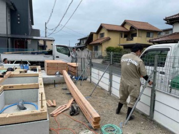 実は本日朝から、新築でお家を建てらるお客様の現場でホウ酸処理をさせて頂いています!