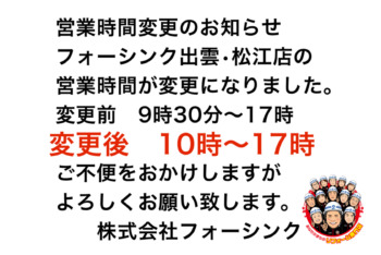 営業時間変更のお知らせ~出雲店・松江店~