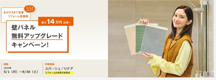 対象はリフォームのお客様、LIXILの浴室 スパージュ・リデアから選べます。