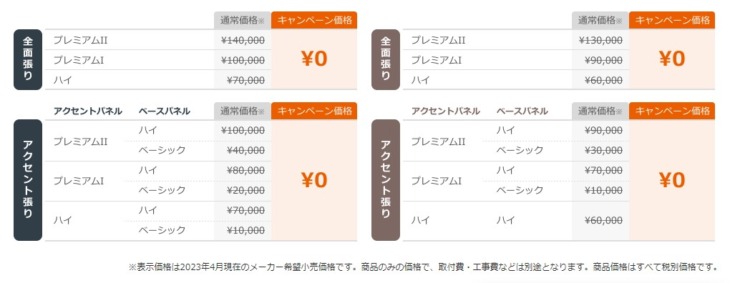アクセント張り、全面張りとも標準のプランであればお好きな色を選んでも無料でアップグレードもできます!!