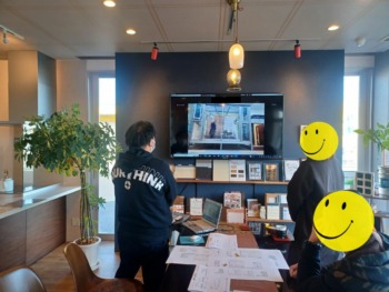 松江店から一番近いLIXIL米子ショールームでは実際にサンルーム・ウッドデッキをご覧いただけませんので、東京のエクステリアLIXILショールームに繋ぎオンラインで商品をご覧頂きました↓