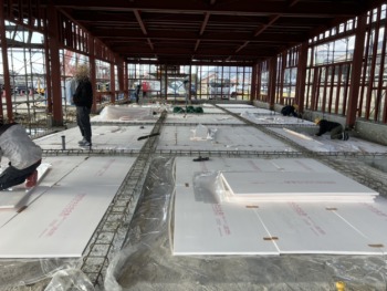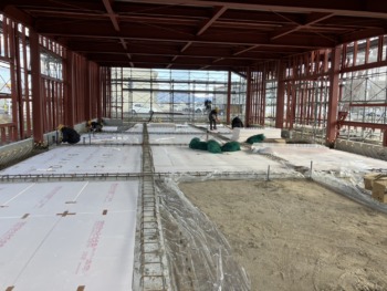 新社屋建設はお陰様で順調に進み、内部床の施工にも入りました!