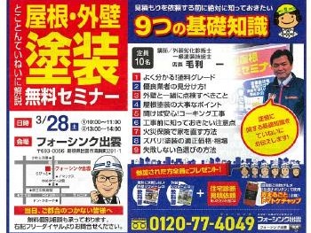 「屋根・外壁塗装 無料セミナー」を開催させていただきます(*'ω'*)