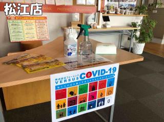 入り口に、”手指除菌水”、”手指消毒液”、”災害対策マスク”を
