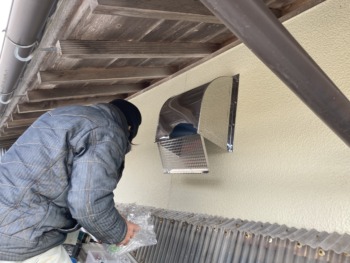 本体の交換が終了し、 雪の降る中での 換気扇フード交換。。。
