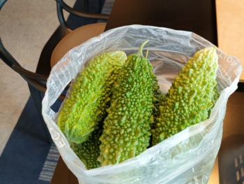 暑い中、お元気にご自分で運転され前回もゴーヤを頂いたのですが、今回はさらに沢山のゴーヤをお土産に持ってきてくれました♬♬