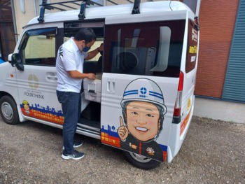 朝から、角アドバイザーは軽バンで荷物をゴソゴソ・・・・