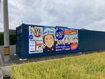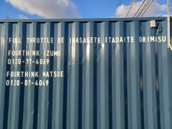 フォーシンク出雲店の倉庫として使っている大型コンテナですが道路側には大きなフォーシンクの看板が設置されておりますが、実は反対側にもちょっとしたこだわりが・・・・