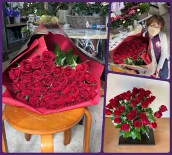「社長のイメージにピッタリの情熱的な赤いバラのブーケを、歳の数で作ろう!!」ということで!。。。お花屋さんに依頼☆社長が喜んでくれるかワクワクしつつ当日。。。。