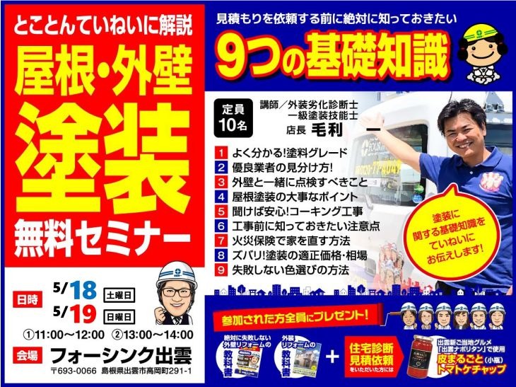 5月度 屋根・外壁塗装無料セミナー(終了しました)