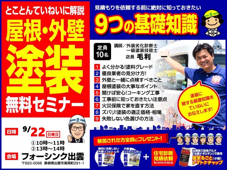 出雲店9月度 屋根・外壁塗装無料セミナー(終了しました)