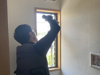 窓工事、寸分の狂いも無いよう、しっかり採寸です!