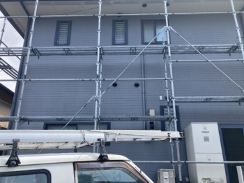 二階の外窓設置工事の為、足場を設置します。