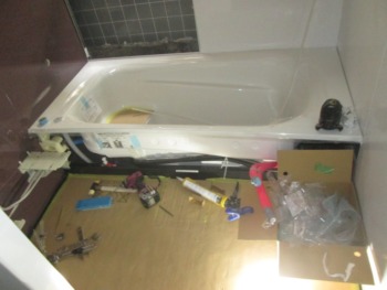 システムバス設置前に給排水・電気設備工事を行います