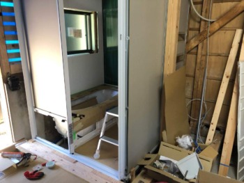 床組み後は洗面脱衣場の窓を設置します
