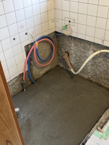 解体後は土間コンクリートを打設し安定した基礎を作ります