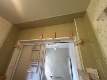 システムバス組立完了後、脱衣場との間仕切り壁を新しく作っていきます。