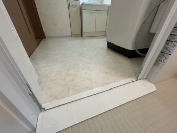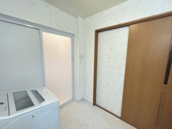 洗面脱衣場です。拡張して広く使えるように改修します(20センチ程)。