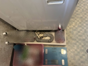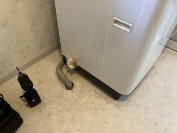 今回は脱衣場床をスッキリさせるため、洗濯パンで撤去し排水を直接床出しで接続。洗濯機を直置きに変更します。