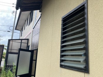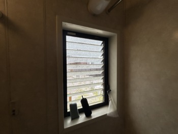 洗面脱衣場の窓です。サッシはルーバー窓で気密性が気になるところでした。冬場は脱衣場が寒いとの事でした。