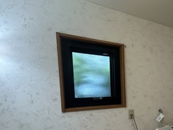 窓をカバー工法で交換中です。脱衣場も同じように窓を交換していきます。