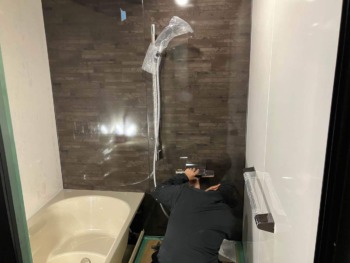 浴槽搬入、シャワー水栓の取付です。