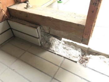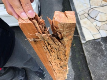 玄関ドアの3方枠にシロアリ被害が・・