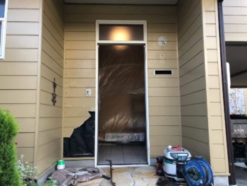 まずは玄関ドア面の外壁サイディングを撤去いたします
