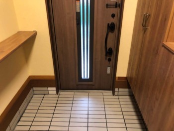 | 施工内容 | 玄関ドア入替え・タイル施工・照明器具移設・モニタ付インターホン新設 |