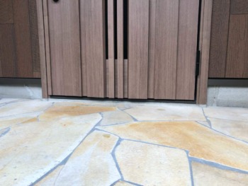 玄関ドアの拡張に伴い基礎&タイルは15㎝程度カットいたします