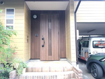 | お客様のご要望 | ①既存の玄関ドアの幅が狭いので広くしたい ②網戸のある玄関ドアにしたい |