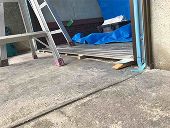 ドアリモ新規レール下はハツッた部分のモルタルを再施工しております。