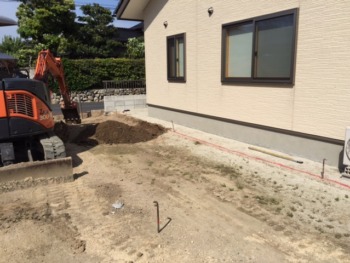 | お客様のご要望 | 新築後外構工事が後回しになっていたら 水たまり/地面の凹凸が酷くなってきたのでなんとかしたい・・というご要望でした |