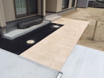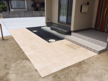 玄関アプローチは300㎜角の化粧石板を敷き詰めます
