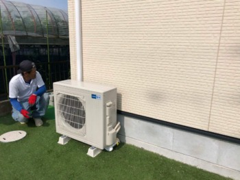 デッキ新設によりエアコンの室外機も移設いたします