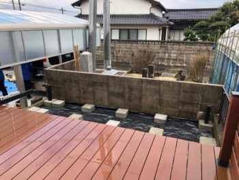 デッキ施工1年後・・植栽撤去によりさらに空いたスペースにデッキを増床いたします