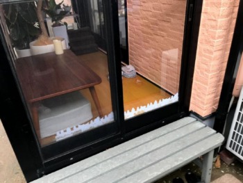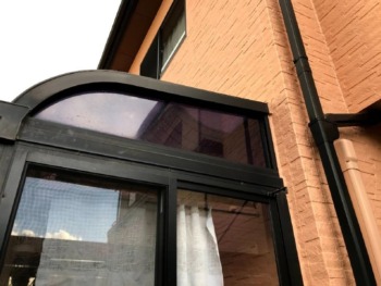 まずはサンルームを撤去⇒塗装前の外壁がコの字に出てしまっています