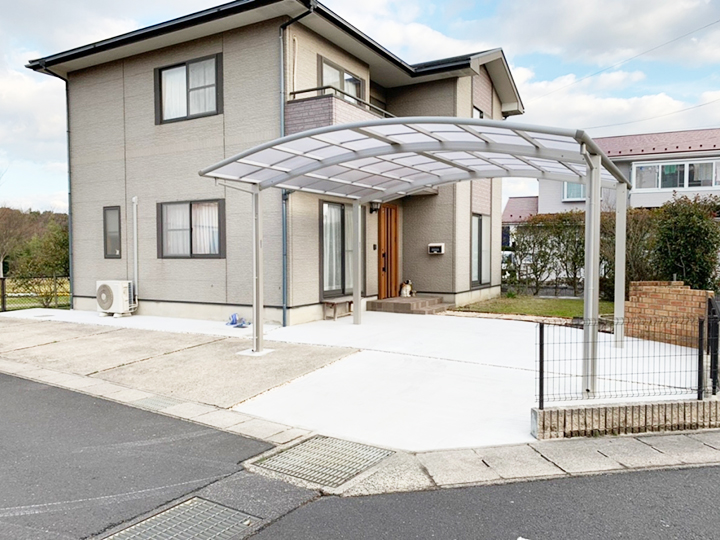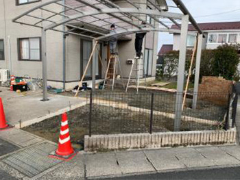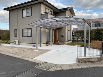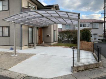 車2台を停められるカーポート設置のご依頼されました。 駐車スペースが土だったのを、今回は土間打ち込みコンクリートにいたしました! YKKAPレイナポートグランシリーズの”レイナツインポートグラン”51-48ポリカーボネート板タイプで施工させていただきました。 |