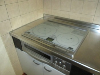 既存のシステムキッチンに違和感なくキレイに納まったIHクッキングヒーターです