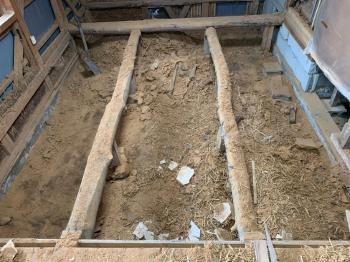 既存の大引きは丸太が使用されていました