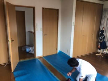 まずは既存のフロアーに傷が付かないようしっかり養生