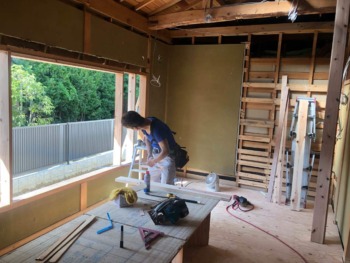床組み後は窓を設置します