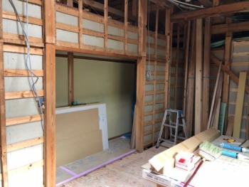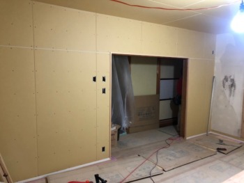 クロス工事も照明器具設置も完了しましたので後は建具と畳を敷き込んで完了です