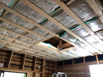 ガラス瓦設置に伴う採光スペース開口部以外は断熱材を敷き詰めます