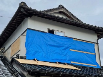 周りに合わせて外壁鋼板を施工します⇒既存漆喰部は補修いたします