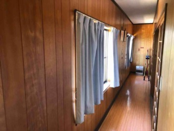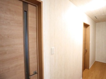 階段上がってすぐの廊下です⇒化粧板仕様から明るいクロスになった事で雰囲気がガラッと変わりました
