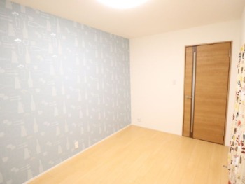 隣の子ども部屋との間仕切り壁はアクセントとなる柄付きのクロスをご選定いただきました