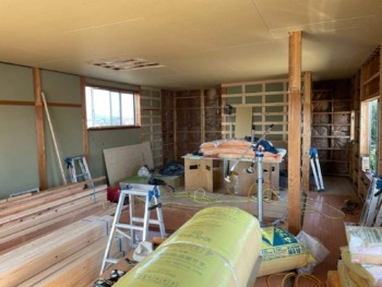 フロア施工⇒壁の石膏ボード施工が終わるとクロス施工へ